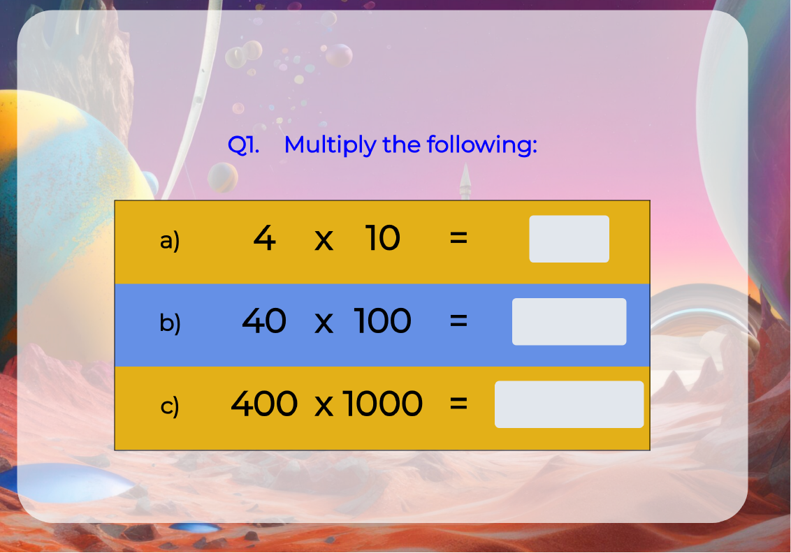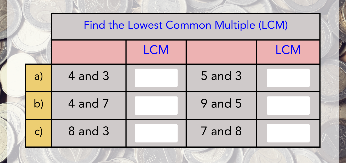 Filter Lessons by Category or Grade All Topics Algebra Geometry Angles and Measure Graphs Key Stage 2 Reasoning skills NUMBER: Fractions, Decimals, Percentage, Place Value, Rounding, Ratio Decimals Fractions Place Value Probability and Statistics Pythagoras and Trigonometry Ratio, Proportion and Rates of change Times Table Practice and Grids Grids and Times Tables All Grades 1 2 3 4 5 6 7 8 1 Times Table Practice 1A (0 to 7) 1 Times Table Practice 1B (0 to 7) 1 Times Table Practice 1C (0 to 7) 1 Times Table Practice 2A (8 to 12) 1 Times Table Practice 2B (8 to 12) 1 Times Table Practice 2C (8 to 12) 4 Product of Prime Factors With Index Or Powers 2 Solve: Simple linear equations1 4 Sequence Linear: Find the Rule and 100th term 1 Number: Inequalities 10-20 1 Divisibility by 3 2 Square Number Recognition 3 Graphs: Mid-Point of a Line Grade 3 5 Graphs: Mid-Point of a Line 6 Graphs: Mid-Point Given Find Point B: Grade 6 2 Graphs: Vertical Line on a Graph: Grade 2 2 Graphs: Horizontal Lines Grade 2 2 Graphs: Intercept Crossing the y Axis: Grade 2 3 Graphs Linear: Gradient of a Line In the First Quadrant 3 Graphs Linear: Gradient With Different Scales 3 Graphs Linear: Negative Gradient With Different Scales 3 Graphs Drawing: Straight Line Graphs Tables 5 Graphs: Find the Equation Of a Line, a Parallel Line and Line with same Intercept 3 Graphs Linear: Recognising Simple Opposite Straight Line Graphs 5 Graphs: From a Coordinate and Gradient Find the Equation 1 Number: Multiplication under 10 True False Set 1 5 Graphs: From a Pair of Coordinates Find the Equation 6 Graphs Linear: From Coordinates Find the Equation 5 Graphs: Rearrange Equation to y = mx + c 6 Graphs: 3D Coordinates of a Point 5 Graphs: Find the Equation of Parallel line From a Coordinate 1 Times Table By 14 5 Graphs: Perpendicular Equations to a Line 1 Musical Odds and Evens 1 Composite or Prime Worksheet A 2 Recognising the Hypotenuse 4 Pythagoras: Triplets and Families Missing Hypotenuse 4 Pythagoras: Triplets and Families Other Side 4 Pythagoras: Find the Hypotenuse (2dp) 4 Pythagoras: Find the Missing Side (3 Sig fig) 5 Pythagoras: From Coordinates find the Hypotenuse 6 Pythagoras: On a Grid Find Length of Line 6 Pythagoras: Compound Shape Type A 6 Pythagoras: Compound Shape Type B 6 Pythagoras: Compound Shape Type C 6 Pythagoras: Diagonals in Squares Type D 6 Pythagoras: Word Problems 3 Pythagoras: The Theorem Statement 7 Pythagoras: In a Cube 5 Trigonometry: Right Angled Triangle Missing Side Using Cos 5 Trigonometry: Right Angled Triangle Missing Side Using Sin 5 Trigonometry: Missing side Using Tan 5 Trigonometry: Find the Angle Using Inverse Cos 5 Trigonometry: Find the Angle Using Inverse Sin 5 Trigonometry: Find the Angle Using Inverse Tan 6 Trigonometry: Equilateral Triangles 1 Number:Counting Musical Instruments 2 Number: Multiply instead of Counting 2 Decimals: Multiplying by 10/100/1000 1 Number: Multiply instead of Counting (Animals and Plants) 5 Trigonometry: Exact Values 0 to 90 Degrees 5 Trigonometry: Exact Values in Right Angled Triangles 5 Trigonometry: Exact Values From an Expression 8 Trigonometry: Exact Values From a Complex Expression 6 Trigonometry: SIN Exact Values Over 90 Degrees 6 Trigonometry: COS Exact Values Over 90 Degrees 7 Trigonometry: Solve for Sinθ Cosθ Tanθ Values Of 0 and 1 7 Trigonometry:Solve for θ 0≤θ≤360 1 Geometry Triangles: Recognising Different Types 2 Graphs: Coordinates in all Four Quadrants 2 Graphs: Secret Message Quadrant One 1 Number: Composite Numbers Under 100 4 Vectors: Simple Vector Notation 2 Number: Triangular Under 50 5 Vectors: Resultant Addition 3 Vector Positives: Journey Across Our Solar System 3 Vector Negatives: Journey Across Our Solar System 3 Vectors: Solar System Two Stage Vector Journey 1 Number: Subtract Three Digit No Borrow 2 Decimals: One Decimal Place times One Decimal Place 2 Number: Next 5 Multiples 2 Number: Factor Finder 2 Number: Whole Number x Decimal 2 Number: Decimal x 2 Digit Whole Number TEST LESSON 2 Shape: Square Area Perimeter 5 Vectors: Subtracting 5 Vectors: Combining 7 Trigonometry: Using the Sine Rule Missing Side 7 Trigonometry: Using the Sine Rule Missing Angle 7 Trigonometry: Using The Cosine Rule Missing Side 7 Trigonometry: Using the Cosine Rule Missing Angle 7 Trigonometry: Using the Sine Rule to Find Area of a Triangle 2 Number: Bidmas/Bodmas G2 3 Number: Bidmas/Bodmas Gold 3 Number: Bidmas/Bodmas Missing Brackets Silver 3 Number: Bidmas/Bodmas Bronze 1 Number: Select Even or Odd Number Under 100 1 Number: Select Even or Odd Number 100 – 1000 1 Measure: Reading a Thermometer In 10s 6 Algebra: Expanding 3 Brackets (Bronze) 6 Algebra: Expanding 3 Brackets (Silver) 6 Algebra: Expanding 3 Brackets (Gold) 2 Percentages: Find 10% 2 Percentages: Find 5% 2 Percentages: Find 1% 1 Place Value: Convert to an Ordinary Number (Bronze) 1 Place Value: Convert to an Ordinary number (Silver) 1 Place Value: Convert to an Ordinary with number with Decimals (Gold) 4 Algebra: Expanding Double Brackets (Bronze) 4 Algebra: Expanding Double Brackets (Silver) 4 Algebra: Expanding Double Brackets (Gold) 2 Algebra: Substitution One Variable (Bronze) 2 Algebra: Substitution Two Variables (Silver) 2 Algebra: Substitution Three Variables (Gold) 3 Probability: Randomly Picking a Letter 6 Vectors: Find the Magnitude 2 Fractions: Of An Amount Bronze 2 Fractions: Of An Amount Silver 2 Fractions: Of An Amount Gold 1 Fractions: 1/2 and 1/4 1 Fractions: 1/3 and 1/6 1 Number: Square Number Practice A 1 Algebra: Table of Values Bronze 1 Algebra: Input Tables Addition 1 Algebra: Input Tables Subtraction 2 Rounding Word Problems to the nearest 10 2 Mental Multiplication like 6 x 15 2 Rounding Word Problems to the nearest 100 and 10 2 Fractions: Simplify Silver 2 Fractions: Simplify Gold 2 Reciprocals: Simple 2 Geometry Triangles: Equilateral/Isosceles Angles 1 Lowest Common Multiple (LCM) Bronze 3 Sequence Fibonacci: Find the Missing Terms 3 Sequence Fibonacci: